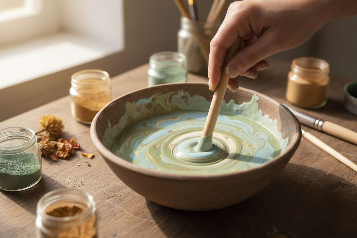 Créez vos propres couleurs avec nos pigments et notre peinture TUTTI à base de lait, 100% naturelle, écologique et personnalisable à l'infini.